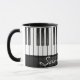 Piano Keyboard Design Mug with customizable text and customizable colour in white keyboard area.