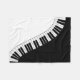 A curving black and white piano keyboard divides black from white in this whimsical graphic design that is sure to delight the musician.