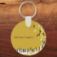 Grand piano keys keychain for kids, pianist or teacher. Cute round personalized key chain with elegant name monogram. Monogrammed accessory for men women and kids. Classical instrument keyboard design for piano instructor, music lessons etc. Fun black and white monogrammed party favour.