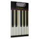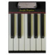 Several piano keys are shown on the back and front of this clipboard, larger than life and vividly detailed. A name is displayed just above — where ordinarily the name of the maker would be found — that can be edited to reflect that of the recipient or deleted altogether, as preferred. A striking accessory for keeping the pianist's notes together.