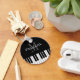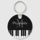 Grand piano keys keychain for kids, pianist or teacher. Cute round key chain with elegant name monogram. Monogrammed accessory for men women and kids. Classical instrument keyboard design for piano instructor, music lessons etc. Fun black and white monogrammed party favour.