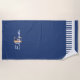 Piano Keys Navy Blue White Monogram Music Keyboard Beach Towel