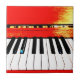 Tile with posterized view of piano with black and white piano keys and yellow and red piano frame.