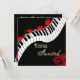 Enchanting and elegant musical/piano invitation with swaying keyboard and red roses.... Note: Diamonds are faux but created for a realistic affect.