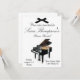 A pretty invitation for any musician. This invitation features a baby grande piano at the bottom and a black bow at the top. The recital information is all customizable to suit your needs.