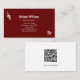 Piano teacher music lessons red business card, with a white treble and bass clef design. With customizable lettering, you customize with your own information. You also add your website to allow for connection with a QR code. Great for promoting your music teaching or performing business.