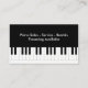 A piano theme business card created with a black and white piano keys graphic background and a smart two side design with industry content. Designed for a piano store, piano lessons, or sales and repair.