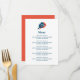 Menu mariage de Pickelball avec logo de la raquette de pagaie. Modèle élégant avec typographie classe. Design amusant pour les couples sportifs qui aiment jouer au pickleball. Partie du jeu correspondant. Modifiez la palette de couleurs pour qu'elle corresponde à votre schéma. Exemple bleu et orange avec initiales sur le dos.