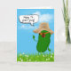 Green pickle on white background with orange glasses and sun hat in grass and white flowers for 75th birthday.