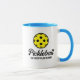 Tasse à café amoureux de Pickleball avec une citation drôle. Coupe personnalisée avec logo à bille jaune et texte de script. Un joli anniversaire ou une fête en faveur idée cadeau pour fan, joueur, entraîneur sportif, maman, papa, mère, épouse, fille, adolescent, mari, couple etc. Modifiez le logo de la bille en n'importe quelle couleur. Personnalisez avec votre propre citation drôle ou nom d'équipe. Couleur intérieure et poignée couleur combo en option.