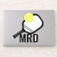 Personalized Monogram Initials Contour Cut Sticker with a Pickleball Paddle and Ball Design available in several sizes for your laptop, water bottle, sticker collection, car, or as favours and gifts for a tennis birthday party.