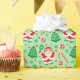 Creative pickleball holiday gift wrap featuring cute Mrs. Claus pickleball player surrounded by Christmas candy and cookies.
