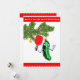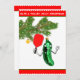 Creative pickleball Christmas cards featuring funny classic pickle ornament playing pickleball.