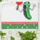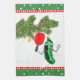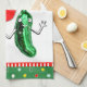 Funny pickleball holiday gift and creative Christmas decor featuring a classic pickle ornament holding a paddle.