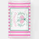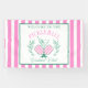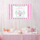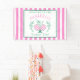 Welcome your friends to a fun day of pickleball and cocktails with this beautiful party welcome banner. This pickleball themed sign has a line art image of pink and white striped pickleball paddles and a martini cocktail surrounded by laurel branches. There is a coordinating pink and white pattern on the front and back. Colours used include green and pink.