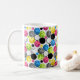 This is the perfect print for all you pickleball players. Why not have coffee in a cup with this beautiful multicolored print. of your favourite sport. It has blue, yellow, green, grey, white and even fuchsia pickleballs arranged in circles on a white background, simply adorable!