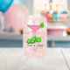 Pickleball pink and green cosmo cocktail with limes. Super fun pickleball drinkware to personalize for a bridal shower, where green pickleballs have been turned into limes in a pink cosmo cocktail for dinks and drinks. Colorful personalized pickleball glass for your pickleball-loving mom, dad, uncle, aunt, brother, sister, neighbor, grandpa, grandma, husband, wife, friend, or work colleague who won't stop talking about pickleball.
