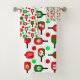 Couleurs traditionnelles de Noël rouge, vert et blanc sur les pagaies à pickleball. Les pagaies sont décorées de flocons de neige, Saint Nicolas, bonhomme de neige, rennes, cloches d'argent, casquette du Père Noël. De nombreuses boules de pickleballs rouges et vert vif font un motif de pois sur l'arrière - plan blanc enneigé. Serviette de bain colorée sur le thème du pickleball pour votre maman amoureuse du pickleball, papa, oncle, tante, frère, soeur, voisin, grand-père, grand-mère, mari, femme, ami ou collègue de travail qui n'arrêtera pas de parler du pickleball.