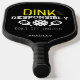 Pickleball Dink Responsibly Funny Typography Pickleball Paddle features a funny Pickleball themed saying in modern script typography with your personalized name below. Perfect gift for Christmas, birthday, Father's Day, Mother's Day, retirement and more. Designed by ©Evco Studio www.zazzle.com/store/evcostudio