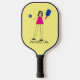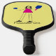 A girl playing pickleball in her bright pink dress with paddles and a blue ball. The design features minimal hand drawn artwork. This design, in a pretty shade of pink, is a great option for the lady in your life. This is the ideal bridal present for the pickleball player. You can't go wrong with this present for a pickleball party bash for the ladies. The design as a whole has a really girly and feminine air about it.