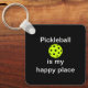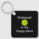 Pickleball Is My Happy Place Funny Pickleball Quote. Trendy modern black and white design features a yellow ball. Funny sayings.