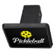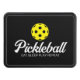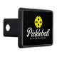 Pickleball lover towing hitch cover with funny quote. Custom trailer hitch cover with yellow ball logo and script text. Cool sports Birthday party gift idea for fan, player, coach, dad, mom, wife, husband etc. Change ball logo and background into any colour. Personalize with your own funny quote or team name. Custom tow hitch cover for car or truck.