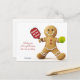 Gingerbread man playing pickleball with Red Pickleball paddle and green pickleball on white background. Custom text back and front