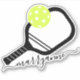 Personalized Name Contour Cut Sticker with Pickleball Paddle and Ball Monogram in a Girly, Feminine, Elegant Calligraphy Script Font is available in several sizes for your laptop, water bottle, sticker collection or as favours and gifts for a tennis birthday party.