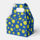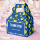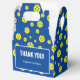 Pickleball party favour box with personalized message. Fun yellow tennis ball pattern design. Great for birthday party, club gathering, teams etc. Custom blue background colour.
