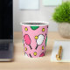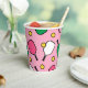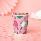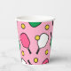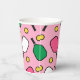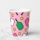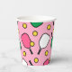 Creative pickleball party or sports event cups featuring hot pink and cool green paddles and yellow balls on pink background.