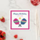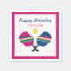 Celebrate your pickleball player or fan with these fun and vibrant party napkins featuring striped blue, green and pink pickleball paddles. Text is customizable. Happy Birthday message is also customizable. Part of a collection from Parcel Studios.