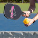 Show the others on the court that you’re the reigning pickleball Queen with this fun pickleball paddle! This design features pink gradient and white text along with a gold crown, on a black background…for the Queen of the court!