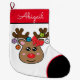 Pickleball Reindeer girl Large Christmas Stocking with customizable texts. Great as a gift for your pickleball friends.