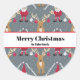 Red, beige and grey Christmas pickleball Classic Round Sticke with Santa, reindeers, pickleballs and snowflakes on grey background. Great idea to wrap up you presents for you pickleball friend or family member
