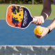 A super fun pickleball paddle featuring a "pickleball sun" surrounded by a palm tree and blue ocean waves. Add 3 lines of custom text - club name, location, player's name, phone number, etc. Or delete and just have the graphic. Makes a perfect gift for all pickleball players - dads, moms, friends, kids, grandparents, pickleball partners, coaches, pickleball club members - both beginners and experienced players alike are sure to love this one of a kind paddle.