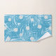 A fun pickleball hand towel featuring a palm leaf and subtle pickleball pattern perfect for use as a sweat towel for your pickleball bag, on display in your bathroom or kitchen, and makes a great gift for a pickleball player friend, mom, grandma, or teen. The turquoise aqua teal blue colours are summery, beachy, and cute!