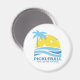 A fun pickleball magnet featuring a pickleball "sun" framed by a tropical palm tree and blue ocean waves. Add your custom text below - club name, pickleball weekend date/location, tournament name, player names, etc. Makes a perfect gift for any pickleball player.