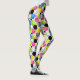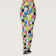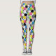 A colourful pair of leggings with multicolored pickleballs placed in a circle on a delicate black grid on a white background. This print has blue, yellow, green, grey, black and fuchsia pickleballs. This print is copyright ©2017 by Marc Dubé.