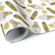 This pattern was inspired by those weird pregnancy cravings! Vanilla soft serve ice cream cones, pickle spears, and pickle chips on a white background. Ideal for mother's day and baby shower gift wrapping.