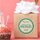 Étiquette de chicanes en conserve avec tout le texte personnalisé dans un style moderne vert sur beige. Changez tout le texte dans votre propre version pour un cadeau de mise en conserve fait maison ou un petit producteur d'aliments par lots.
