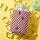 Fun drink can cooler done in a red and white chequered pattern, with graphics of black ants, on the front and back. Customize to add text. Matching products are available.