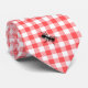 Fun picnic themed neck tie done in a red and white gingham pattern with graphics of big black ants. Great gift idea for any man.