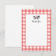 Perfect after a couple's I Do BBQ this flat thank you note features a cheerful take on the classic, red, gingham plaid picnic blanket pattern and a little detail of grilling tools with a heart and custom monogram initials.