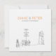 The minimalist black and white colour scheme of this wedding invitation exudes sophistication and modernity, making it a stylish choice for couples who appreciate simplicity and elegance. The thoughtful details in the illustration, such as the couple's embrace and the picnic elements, add a touch of whimsy and charm to the overall design. The combination of classic black and white with a vibrant pop of orange creates a visually striking contrast that is sure to catch the eye of your guests.