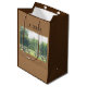 A photo of picnic tables and words "A Picnic" on the from and a decorative frame and words Just For Me on the back. The background is light brown and the sides are brown on this Lunch Bag. Perfect for camping trips and Office or School Lunches. Makes a great conversation starter for anyone.