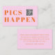 Modern pink, orange font, wedding "Pics Happen" QR Code, Photo-Gallery-Website, QR-Code, Enclosure Card. Personalized with your names, photo-gallery-website, scannable QR code and message to keep your friends and family up to date about your upcoming special day.