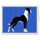 Wirkliche große Karte mit modernem Druck. Cartes d'illustration en silhouette Piebald Noir Great Dane sur arrière - plan pois. adorable et fin, parfait pour chaque message drôle.