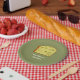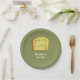 Chewy Italian style bread oozing with garlicky butter, and scattered with herbs. This hand-drawn slice of garlic loaf can be paired not only with food from Italy but any home-made feast. You can add your own text to personalize for an occasion or event, to appear against a sage green background (this shade can be changed if needed).