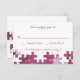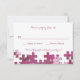 Une carte de réponse coordonnée avec des nuances de pièces de puzzle rose. <a href='http://www.freepik.com/free-vector/puzzle-background-free-for-download_714024.htm'>Conçu par Freepik (). </a>() La carte est facile à customiser avec votre libellé, police, couleur de police et choix de six types de papier.<br/>() Pas exactement ce que vous cherchez? Tous nos produits peuvent être conçus sur mesure pour répondre à vos besoins sans frais supplémentaires.<br/>() Contactez-nous simplement à l'adresse heartfelthelper@gmail.com<br/>() Coordination des produits disponibles : Pièces de puzzle Invitation