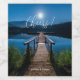 Cheers! bottle labels with a beautiful photograph of a wooden pier stretching out over a calm lake.